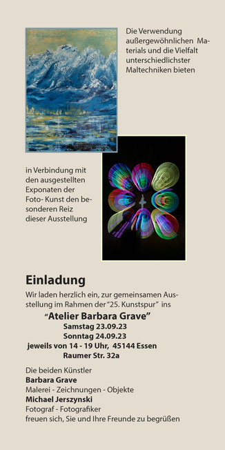 Die Künstlerin Barbara Grave entwickelte ihr Interesse für die Malerei bereits in jungen Jahren. Ihre Acryl-Bilder auf Leinwand überzeugen durch ihre kraftvollen und leuchtenden Farben, welche durch Dynamik und Komplexität der Bildkompositionen akzentuiert werden.